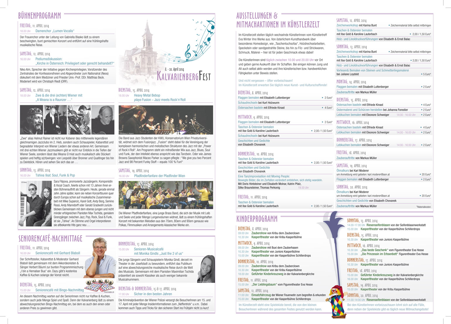 Das Kalvarienbergfest 2014 (08.-20.04.2014, Kalvarienberggasse, 1170 Wien) hat über das Künstlertreff Eva Winter einiges an Programm, einen eigenen Stand und ein Künstlerzelt dazu bekommen (Danke Eva für Deinen unermüdlichen Organisationsfleiß und irrsinnig ansteckenden Optimismus!!)