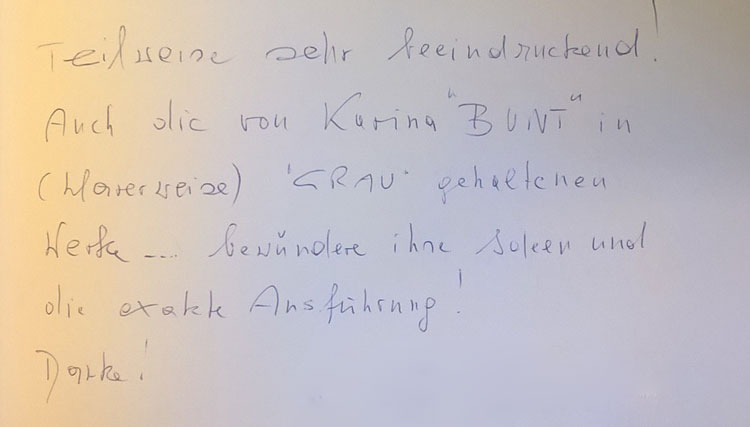 Hier einige Eindrücke vom Aufbau bzw. der Zeit kurz VOR der Eröffnung (alle Fotos: Karina Bunt) die Menschenmenge bei der Vernissage selbst war nicht sehr gut zu fotografieren, dafür habe ich als Draufgabe einen Beitrag aus dem Gästebuch dabei, der mich persönlich besonders gefreut hat 🙂