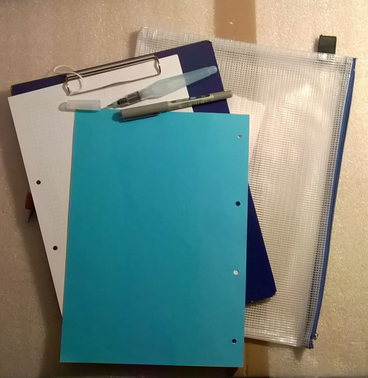 Basisausrüstung für Zeichnen unterwegs (Fotos: Karina Bunt)
