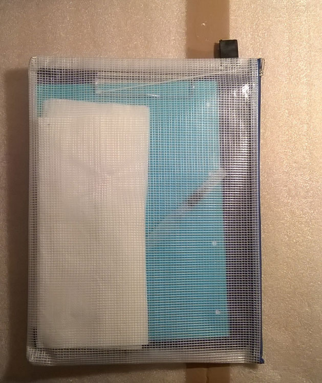 * eine Kunststoffhülle mit Zipp gegen Staub und Spritzwasser (in der zusätzlich die Stifte sicher aufgehoben sind)