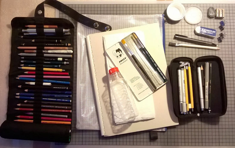 Nachdem ich zuletzt meine Basis-Unterwegs-Zeichnen-Ausrüstung vorgestellt habe, hier meine Erweiterung für intensivere Auseinandersetzungen mit verschieden Dingen bzw. Sujets.