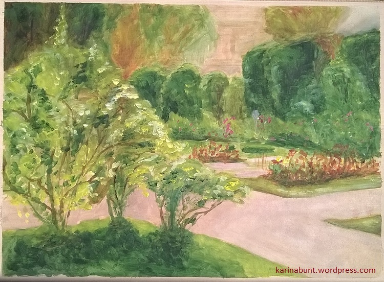Gemeinsam malend im Wiener Volksgarten; Öl auf grundiertem Papier, ca. 23x33cm, August 2016