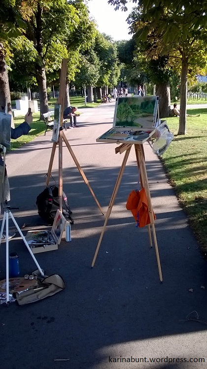 Am vergangenen Samstag den 27.8.2016 war ich in sehr netter Gesellschaft zweier MalerkollegInnen im Wiener Volksgarten, um dort das Freiluftmalen zu üben.