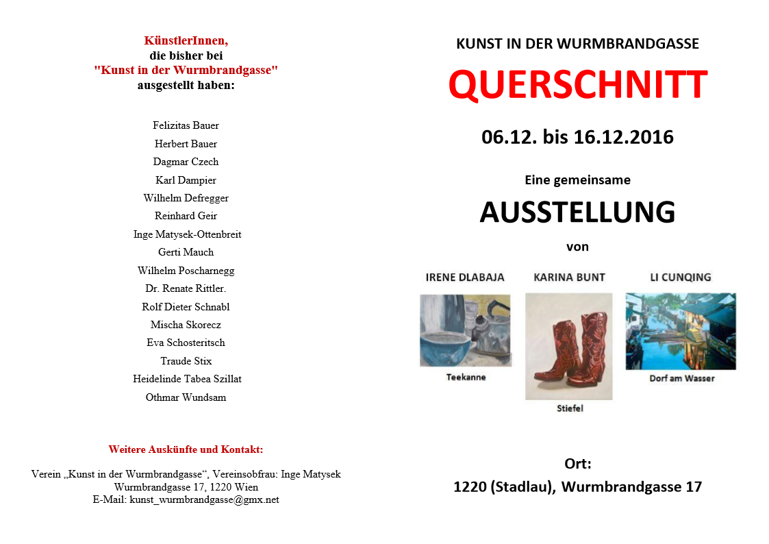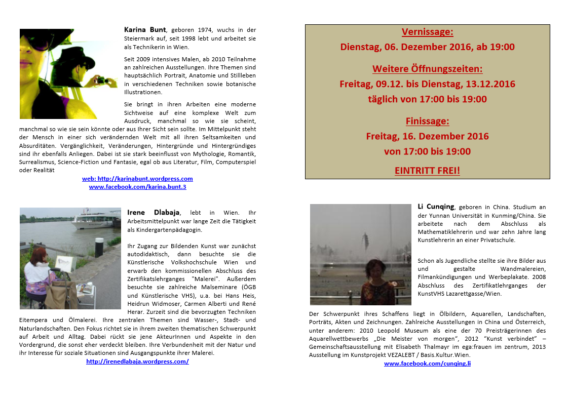 Die Vernissage findet am Dienstag, den 06.12. 2016, um 19 Uhr statt.