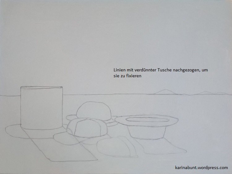 Linien mit verdünnter Tusche fixiert