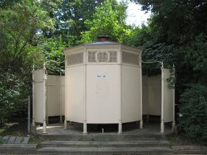 Zum Beispiel das im vergangenen Sommer mit einem neuen Anstrich versehene öffentliche WC beim Puchsbaumpark, an dem ich beinahe täglich vorbeigehe – seit heute weiß ich, daß es aus dem Jahr 1903 stammt, von der Firma Beetz errichtet wurde und sich auf der Liste der Baudenkmäler befindet!