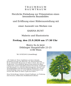 Der Flyer, das Gesamtprojekt und die drei angefertigten Entwürfe (plus ein paar kleinere Landschaften aus der Juli-Steiermark Malwoche) werden am Freitag, den 25.09.2020 um 17:30 im Bistro „So & Jetzt“, Döblinger Hauptstraße 23-25, 1190 Wien präsentiert.