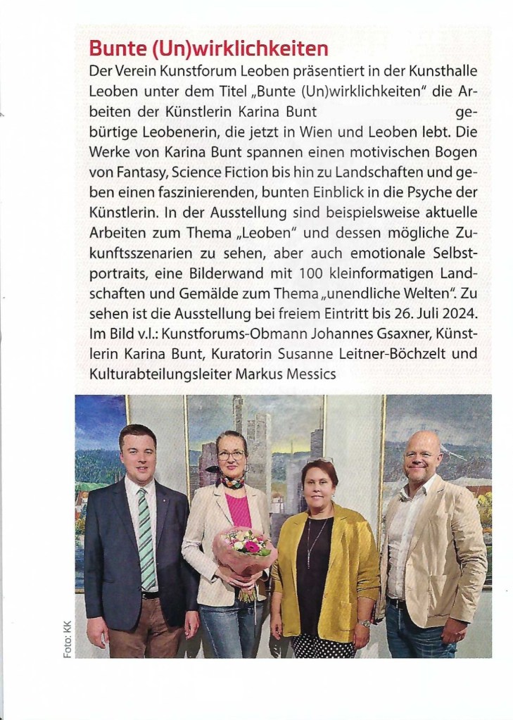 Im Leobner Stadtmagazin ist rechtzeitig zum Ausstellungsfinale am 26. Juli 2024 noch ein Artikel über die Eröffnung erschienen, den ich Euch unbedingt zeigen möchte!