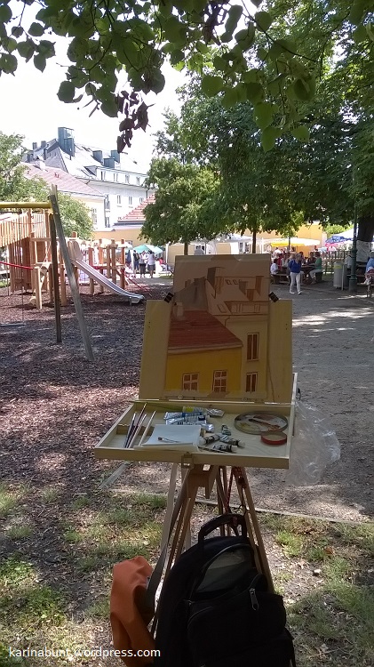 Gestern habe ich mich mit einem Malerkollegen über die Freuden und Tücken der Plein-Air-Malerei unterhalten, dazu ist mir gleich dieses Bild aus dem Juli 2016 eingefallen: 35°C, mit dem Wind herumfliegende Staub- und Pflanzenteile und dazu Annenkirtagstrubel, eine herausfordernde Mischung 🙂 Inzwischen habe ich meine Malmethode für Studien verändert und habe vor, das diesen Sommer“Architekturstudie„Architekturstudie (Rupertusplatz, Dornbach)“ weiterlesen