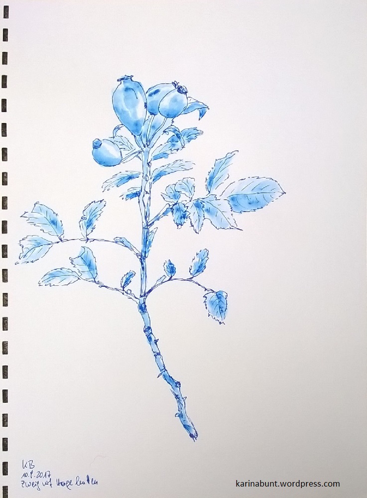 Momentan zeichne ich wieder verstärkt mit Tintenroller und Pinselstift – alles sehr flott und ohne Anspruch auf botanische bzw. portraithafte Exaktheit, aber dafür mit riesengroßer Freude 🙂 Tintenroller auf Zeichenpapier, 22x30cm (2017) Am Freitag hängen Tom und ich die Ausstellung in Kaumberg – die letzten Vorbereitungen sind abgeschlossen, morgen packe ich alles zusammen. Und auch“Zweig„Zweig mit Hagebutten“ weiterlesen